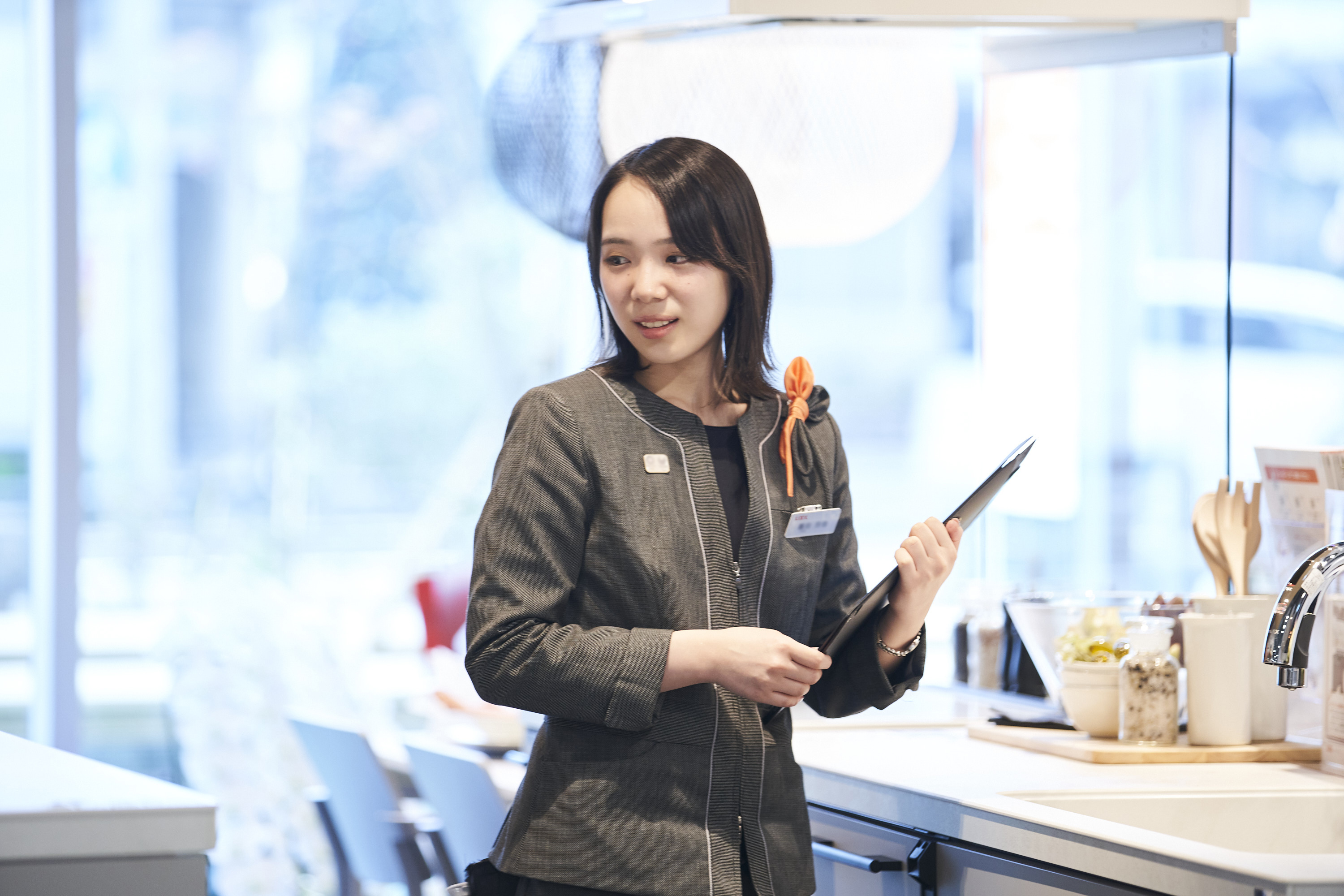 さまざまな“初”があるショールーム春日井は、実験的な部分がたくさんあり、ショールームの未来像ともいえる場所です。期待値も大きく、オープンから間もない状況ですが、業者さまからは大変好評で、県内外から数多く見学に来ていただいています。コーディネーターやマネージャーもそれにしっかり応えるため、接客レベルの向上に取り組んでいます。